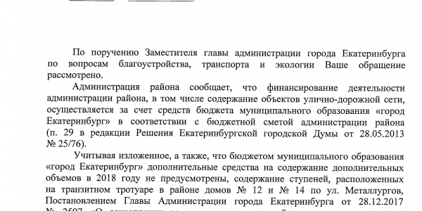 Номер жалобы:29782 Тип жалобы:Ямы во дворе Название объекта:Управляющая Компания Верх-исетская Город:Екатеринбург Адрес:Екатеринбург, улица Металлургов, 14 Описание жалобы:Ступеньки находятся в разрушенном состоянии Статус: