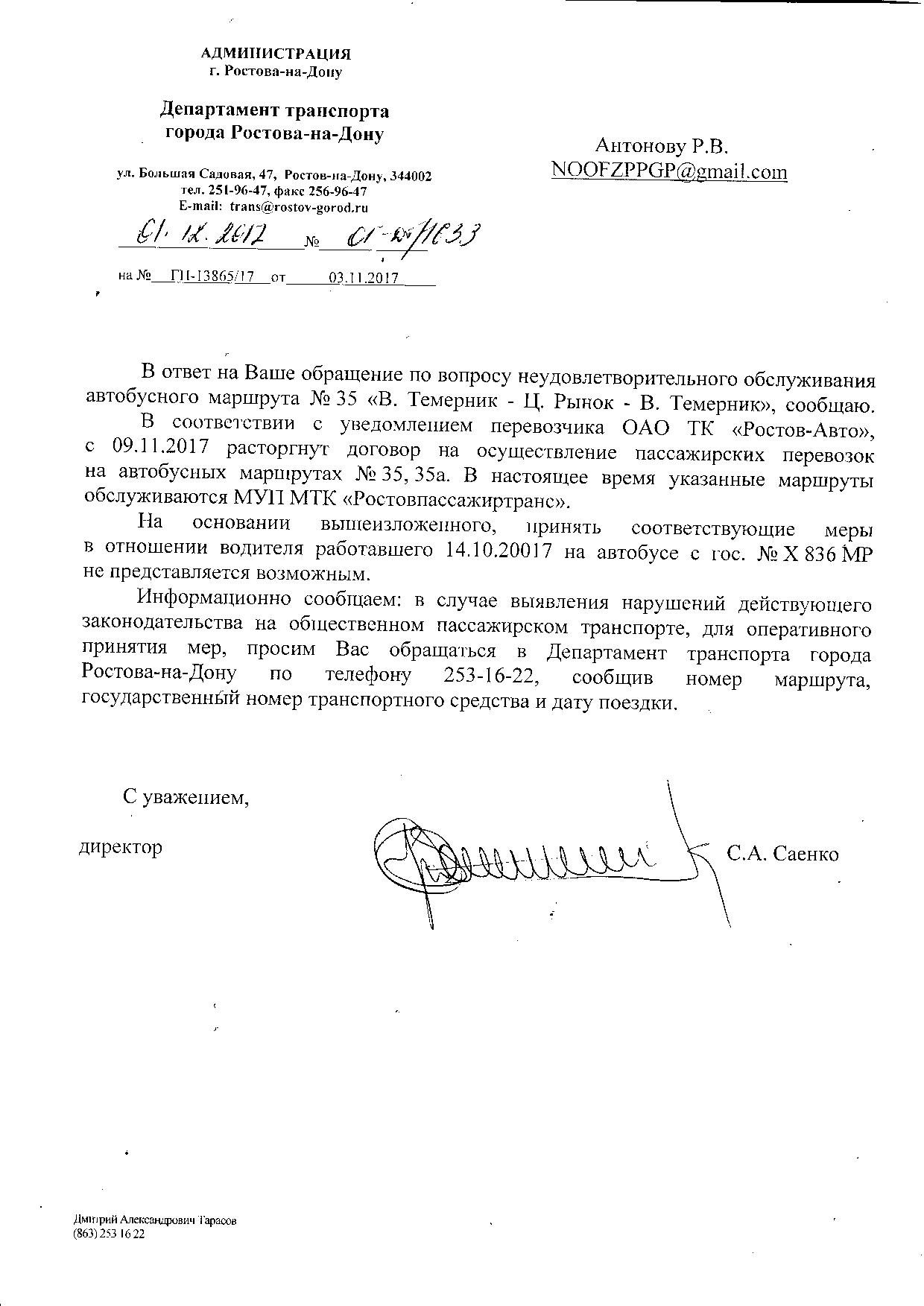 Номер жалобы:26277 Тип жалобы:Прочее Название объекта:Департамент транспорта г.Ростов-на-Дону Регион:Ростовская область Город:Ростов-на-Дону Адрес:Остановка около ЦУМ Описание жалобы:Дата и время нарушения 14.10.2017 20:32:03