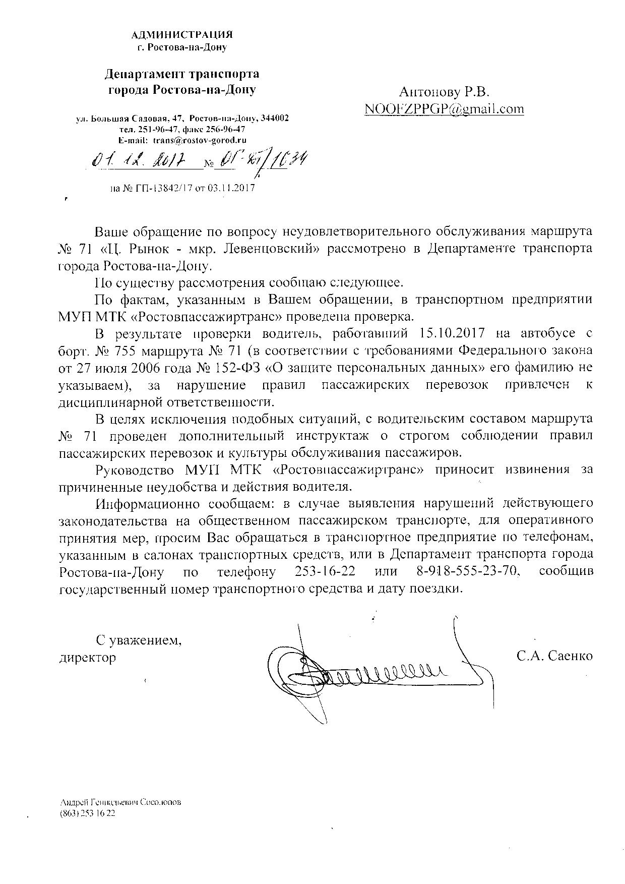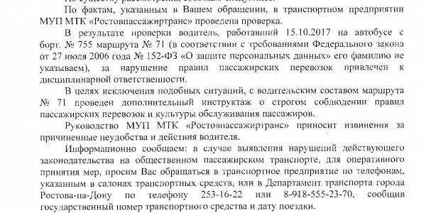 Номер жалобы:26274 Тип жалобы:Прочее Название объекта:Департамент транспорта г.Ростов-на-Дону Регион:Ростовская область Город:Ростов-на-Дону Адрес:По маршруту Описание жалобы:Дата и время нарушения 14.10.2017 14:12:25