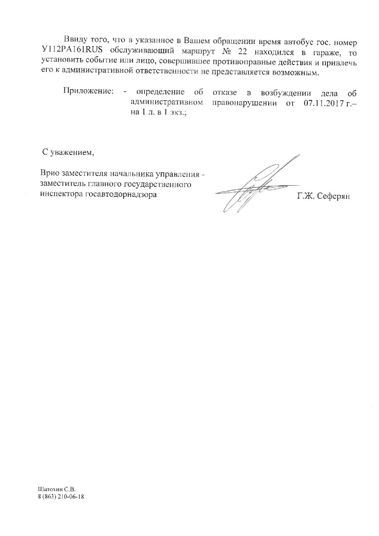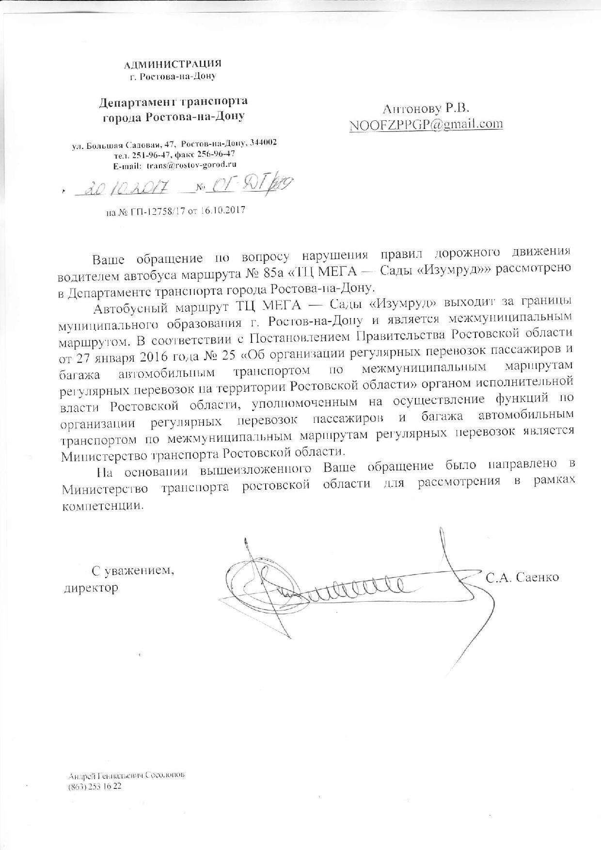 Номер жалобы:25785 Тип жалобы:Прочее Название объекта:Департамент транспорта г.Ростов-на-Дону Регион:Ростовская область Город:Ростов-на-Дону Адрес:По маршруту Описание жалобы: 02.10.2017 13:03 Место совершения нарушения в районе Северного рынка начал разговор и до Беляева, где я вышла, не окончил. В связи с чем вождение местами осуществлялось родной рукой или вовсе без управления. При движении от Ц. рынка к Орбитальной