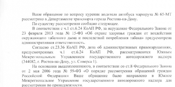 Номер жалобы:25770 Тип жалобы:Прочее Название объекта:Департамент транспорта г.Ростов-на-Дону Город:Ростов-на-Дону Адрес:Королева 4 Описание жалобы:28.09.2017 15:39 Автобус № В396УА