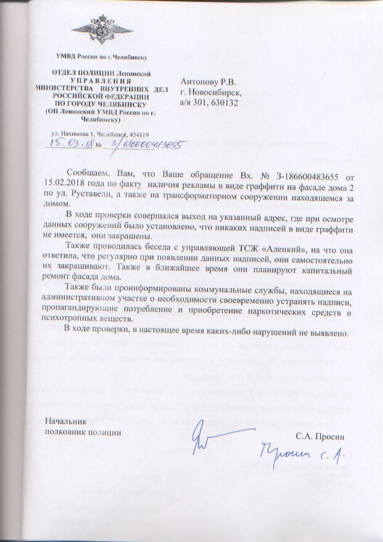 Номер жалобы:29473 Тип жалобы:Иные проблемы ЖКХ Название объекта:Управляющая Компания Регион:Новосибирская область Город:Новосибирск Адрес:ул. Дмитрия Донского, 4 Описание жалобы:Дмитрия Донского 4 корпус 1, надписи Статус:
