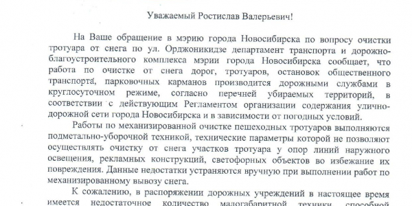 Номер жалобы:16568 Тип жалобы:Качество уборки снега на тротуарах Название объекта: Регион:Новосибирская область Город:г. Новосибирск Адрес:ул. Фрунзе, 2 Описание жалобы:Не вывезен снег с тротуара, на тротуаре грязь Статус: