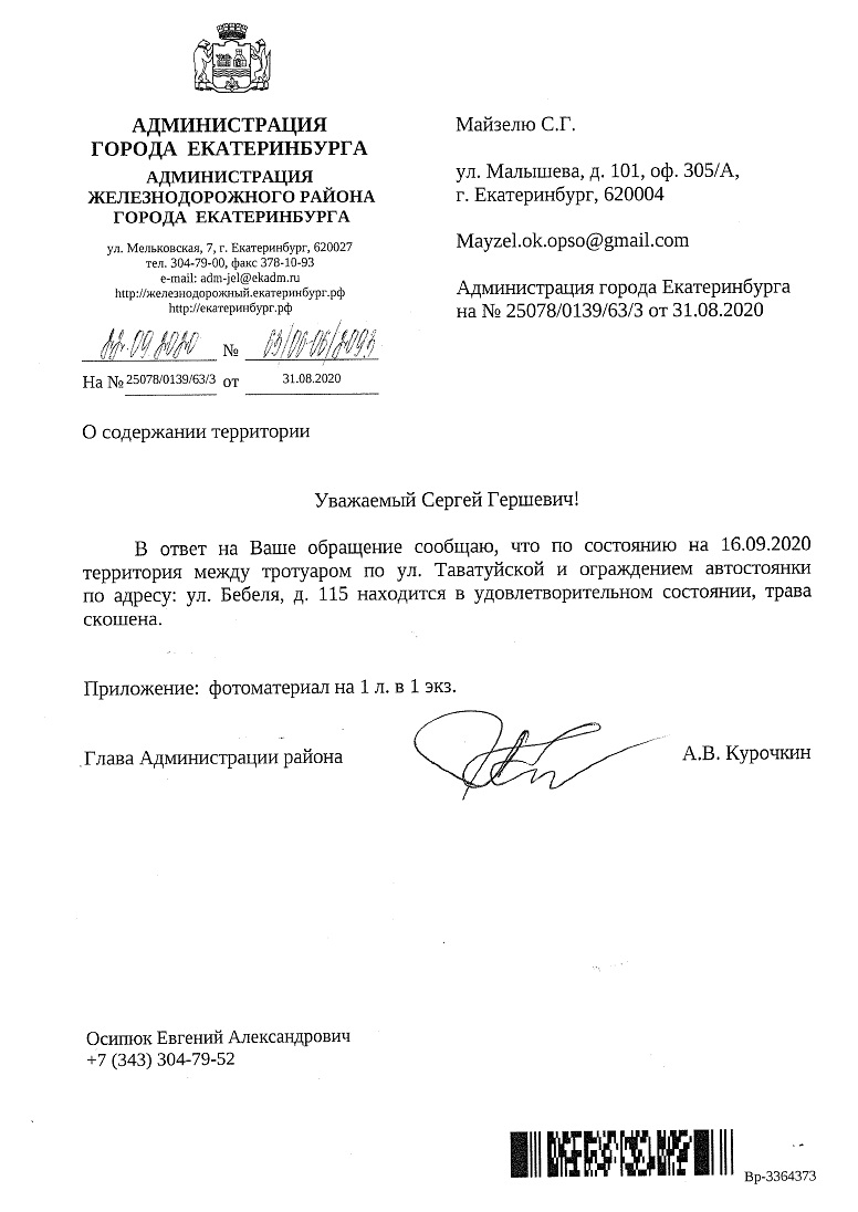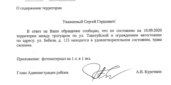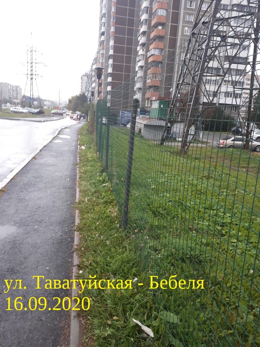 Номер жалобы:68513 Тип жалобы:Прочее Название объекта:мэрия Регион:Свердловская область Город:Екатеринбург Адрес:улица Бебеля, 115 Описание жалобы:Необходимо кошение травы, растущей между тротуаром вдоль улицы Таватуйской и ограждением территории автосалона по адресу Бебеля, 115 Статус: