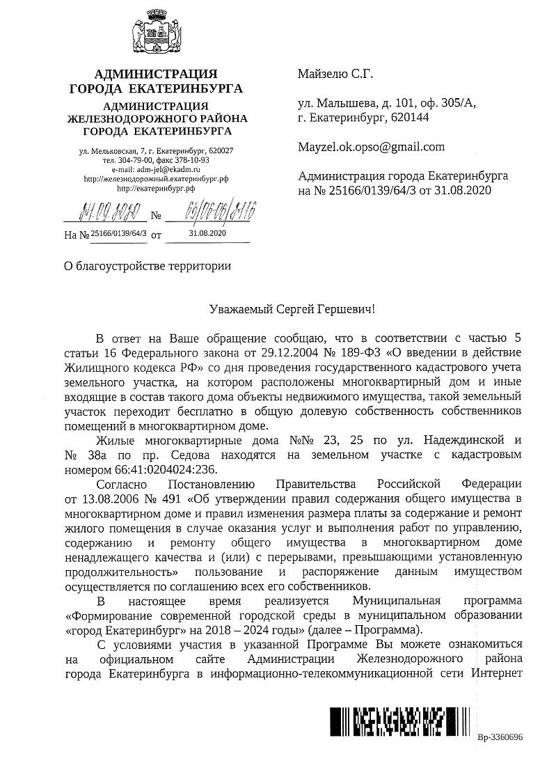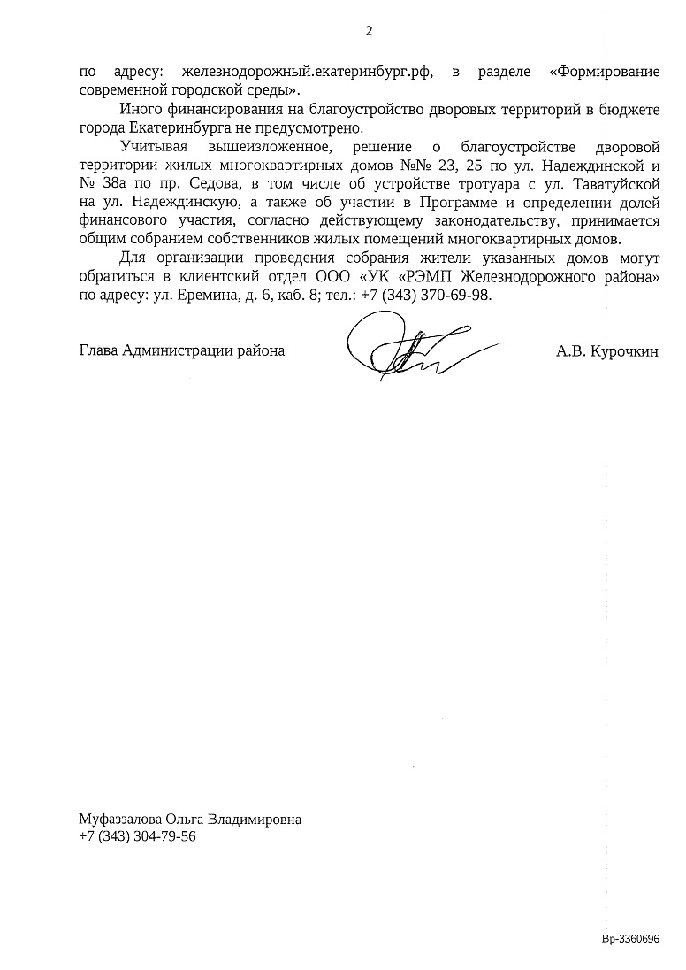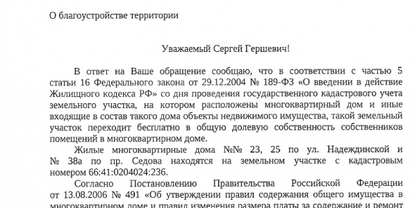 Номер жалобы:68517 Тип жалобы:Прочее Название объекта:мэрия Регион:Свердловская область Город:Екатеринбург Адрес:Надеждинская улица, 25 Описание жалобы:Необходимо строительство тротуара наискосок с улицы Таватуйской на улицу Надеждинскую. Статус: