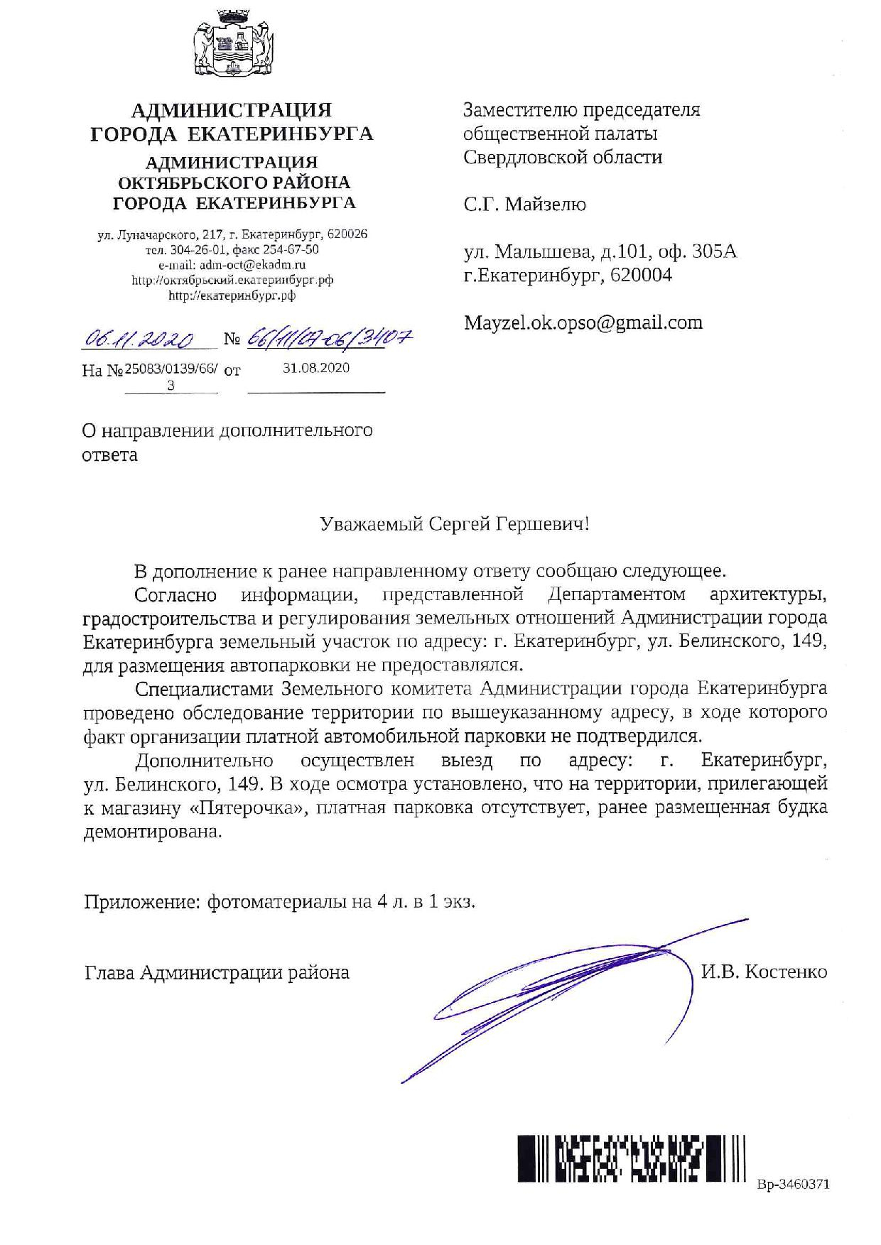 Номер жалобы:68487 Тип жалобы:Прочее Название объекта: Регион:Свердловская область Город:Екатеринбург Адрес:улица Белинского, 149 Описание жалобы:Газон на Муниципальной земле около дома Белинского 149 превращён в платную парковку. Статус:
