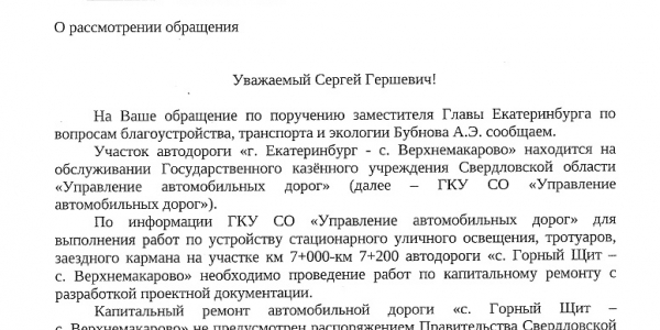 Номер жалобы:68479 Тип жалобы:Прочее Название объекта:министерство транспорта свердловской области Регион:Свердловская область Город:Екатеринбург Адрес:(56.720939, 60.437320) Описание жалобы:На автобусной остановке «Шиловский кордон» (в направлении г. Екатеринбурга), расположенной на автодороге «г. Екатеринбург — с. Верхнемакарово», отсутствуют посадочная площадка, тротуар от пешеходного перехода и освещение. Также на остановке необходим ремонт скамьи. Статус: