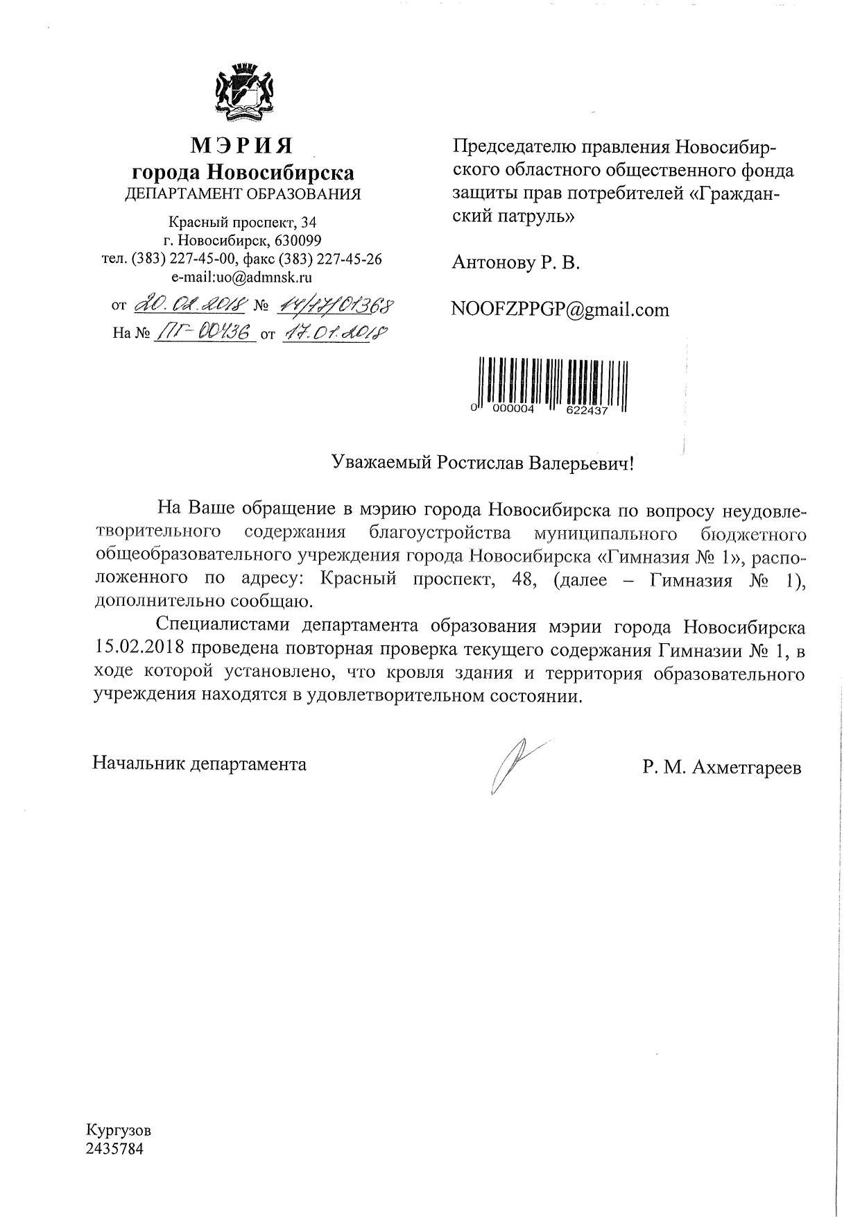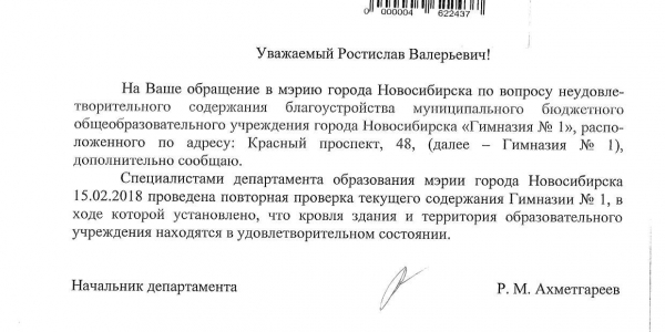 Номер жалобы:28782 Тип жалобы:Иные проблемы ЖКХ Название объекта:Управляющая Компания Регион:Новосибирская область Город:Новосибирск Адрес:ул. Мичурина, 9 Описание жалобы:Надписи на хозяйственном корпусе Статус: