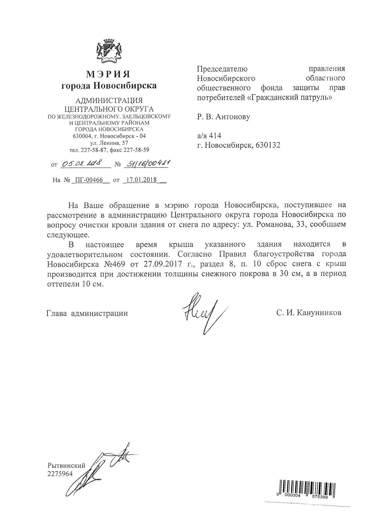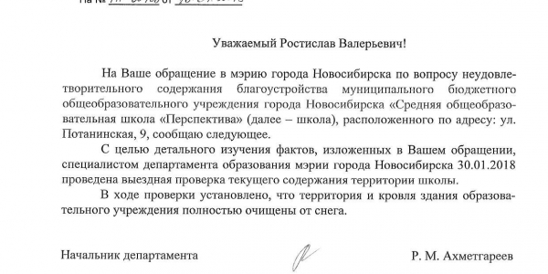 Номер жалобы:28783 Тип жалобы:Иные проблемы ЖКХ Название объекта:Администрация Регион:Новосибирская область Город:Новосибирск Адрес:Потанинская ул., 9 Описание жалобы:Снег на крыше Статус: