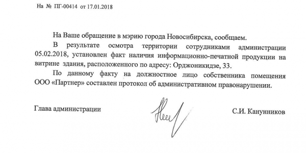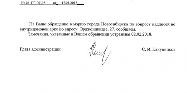 Номер жалобы:28747 Тип жалобы:Иные проблемы ЖКХ Название объекта:Управляющая Компания Регион:Новосибирская область Город:Новосибирск Адрес:ул. Орджоникидзе, 33 Описание жалобы:Надписи на фасаде дома Статус: