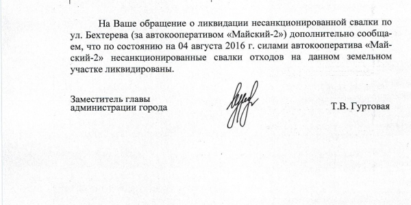 Номер жалобы:5132 Тип жалобы:Несанкционированные свалки Название объекта:Белогорск Город:Белогорск Адрес:Белогорск, ул. Чехова, 48 Описание жалобы:Несанкционированная свалка возле гаражного массива. Регулярно пополняется отходами. Статус: