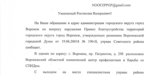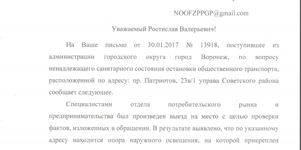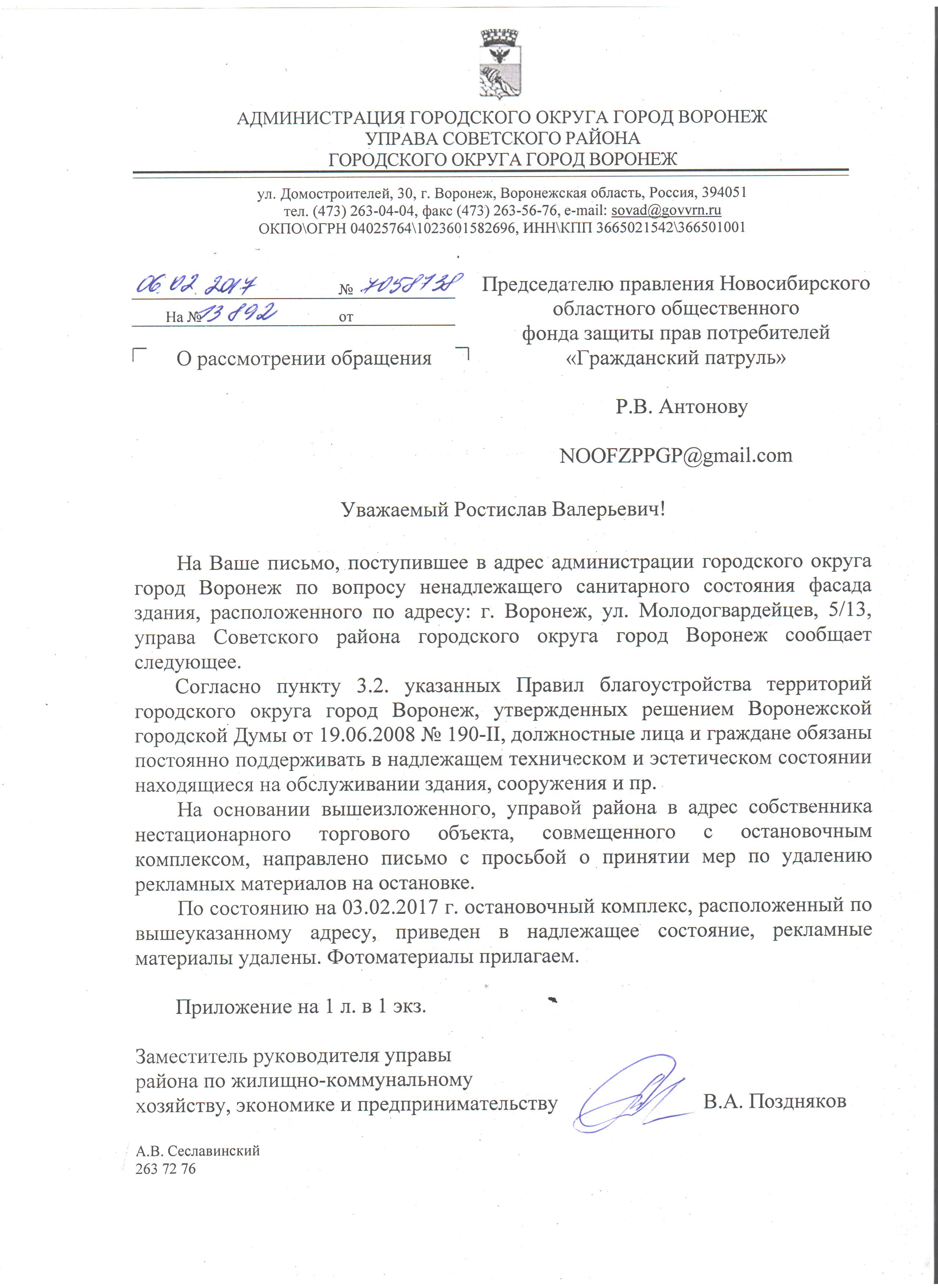Номер жалобы:13892 Тип жалобы:Прочее Название объекта:Ук Регион:Воронежская область Город:Воронеж Адрес:ул. Молодогвардейцев, 5/13 Описание жалобы:Обьявл в неп месте Статус:
