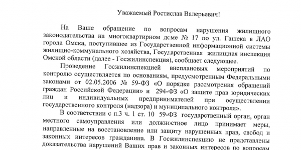 Номер жалобы:28107 Тип жалобы:Иные проблемы ЖКХ Название объекта:Гжи Регион:Омская область Город:Омск Адрес:ул. Гашека, 17 Описание жалобы:Комментарий жильцов - незаконно, собрания не был Статус: