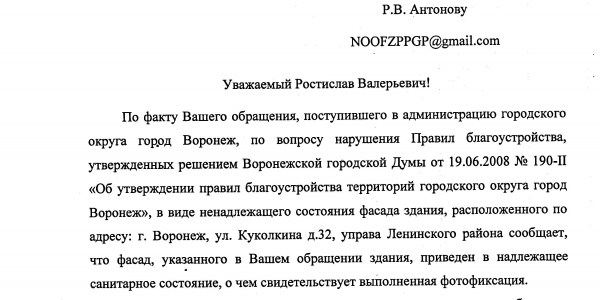 Номер жалобы:27998 Тип жалобы:Иные проблемы ЖКХ Название объекта:Управляющая Компания Регион:Новосибирская область Город:Новосибирск Адрес:Советская 50 Описание жалобы:Советская 50 A, не в тон закрашенные надписи на фасаде дома Статус: