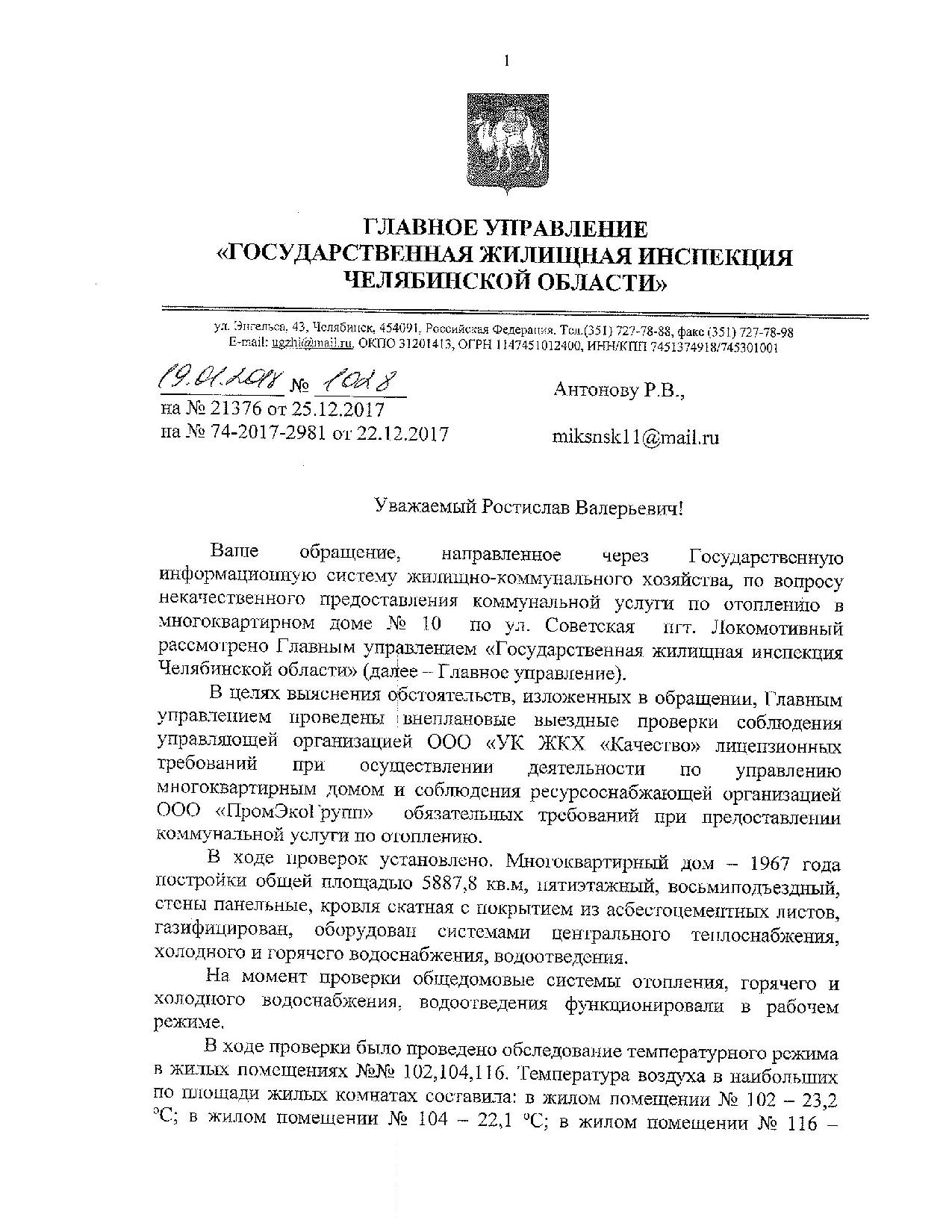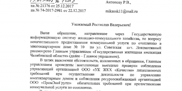 Номер жалобы:27903 Тип жалобы:Иные проблемы ЖКХ Название объекта:Качество Регион:Челябинская область Город:Локомотивный/Карталы Адрес:ул. Советская, 10 Описание жалобы:Постоянно пропадает отопление не возможно дома находиться вынуждены отапливать электрообогревателем тратить при этом электроэнергию. А за отопление требуют платить. Прошу поставьте поселок Локомотивный челябинская область, а то его на карте не видно. Статус: