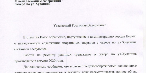 Номер жалобы:68087 Тип жалобы:Прочее Название объекта: Регион:Пермский край Город:Пермь Адрес:парк имени С.М. Кирова Описание жалобы:воркаут около скейтпарка в сквере им. Худанина (Закамск) поставили похоже для галочки и сразу забили и забыли. Половина снарядов стоит сломаная и заброшенная Статус: