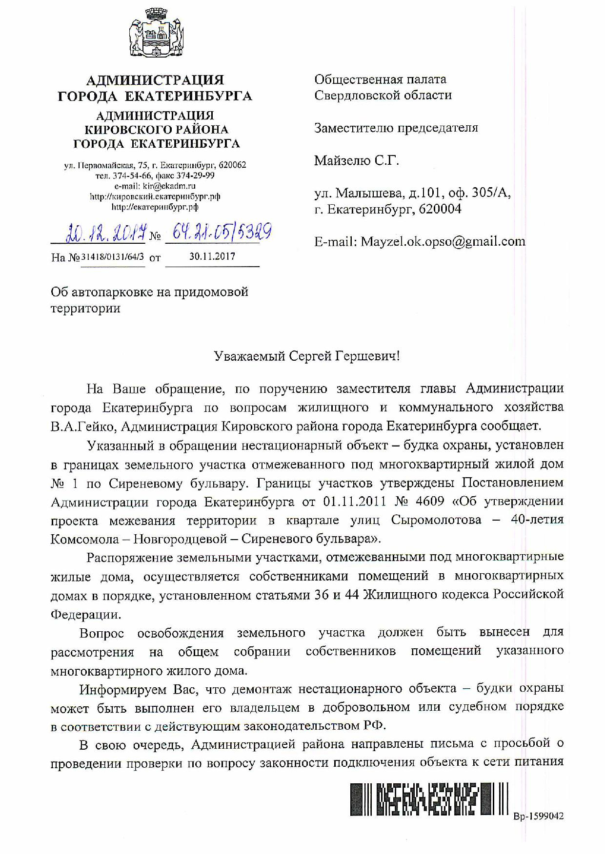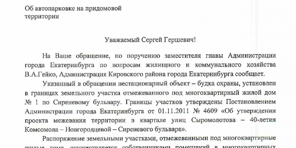 Номер жалобы:27460 Тип жалобы:Иные проблемы ЖКХ Название объекта:Нелегал В Будке Регион:Свердловская область Город:Екатеринбург Адрес:Сиреневый б-р, 1А Описание жалобы:По указанному адресу находистся нелегальная стоянка с жителей собирают деньги за парковку автомобилей. Будка также нелегально подключена к электросетям. Бесплатно запрещают парковатся. Статус: