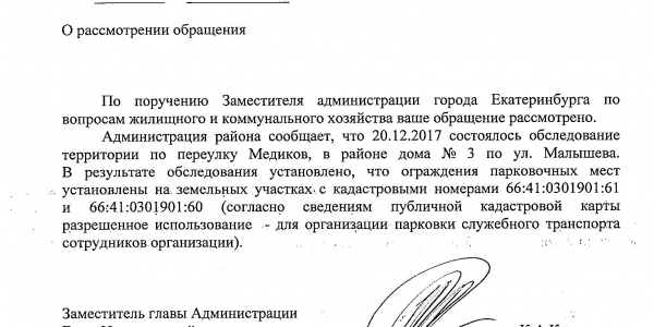 Номер жалобы:27570 Тип жалобы:Иные проблемы ЖКХ Название объекта:Не Знаю Регион:Свердловская область Город:Екатеринбург Адрес:пер. Медиков, Описание жалобы:Самозахват территории. Статус: