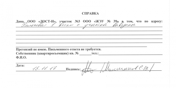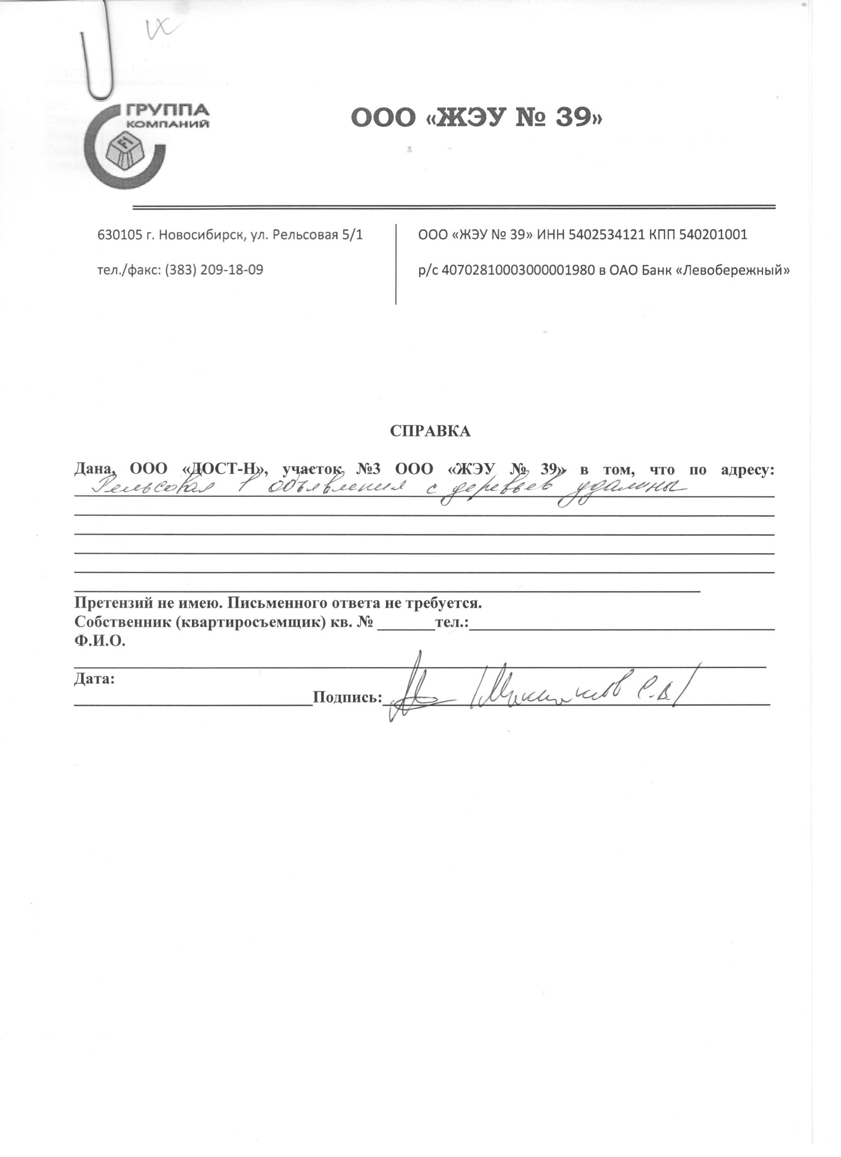 Номер жалобы:26768 Тип жалобы:Иные проблемы ЖКХ Название объекта:Управляющая Компания Регион:Новосибирская область Город:Новосибирск Адрес:ул. Рельсовая, 1 Описание жалобы:Объявлений в неположенных местах Статус: