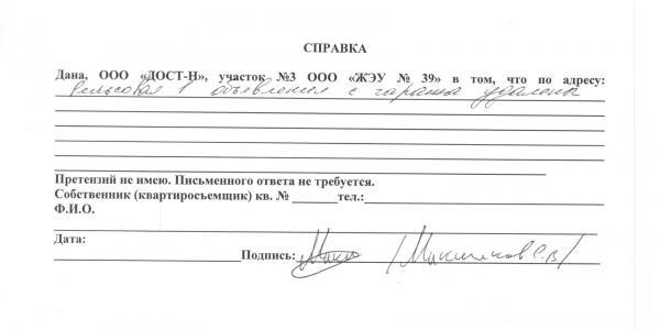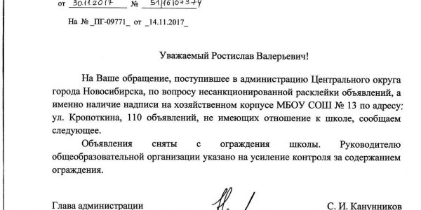 Номер жалобы:26766 Тип жалобы:Иные проблемы ЖКХ Название объекта:Управляющая Компания Регион:Новосибирская область Город:Новосибирск Адрес:ул. Рельсовая, 1 Описание жалобы:Объявления в неположенных местах Статус: