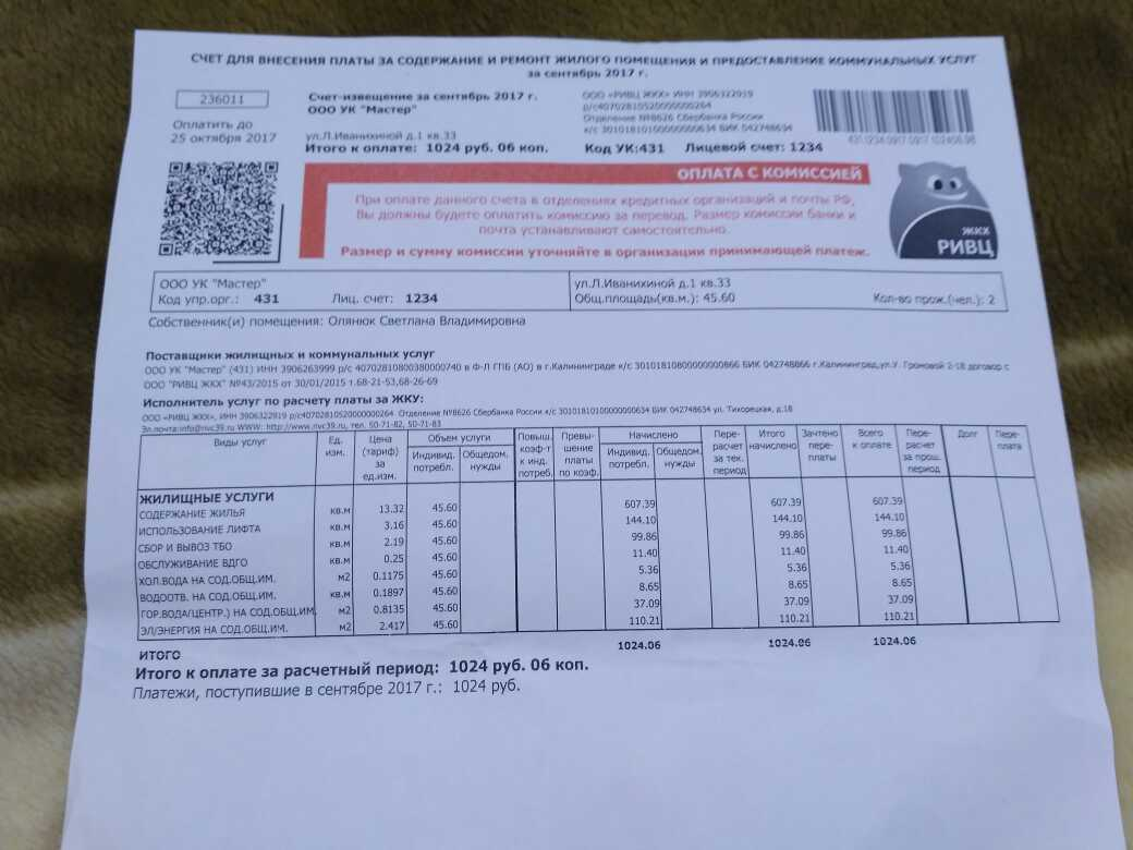 Номер жалобы:26627 Тип жалобы:Иные проблемы ЖКХ Название объекта:УК Мастер Регион:Калининградская область Город:Калининград Адрес:улица Л. Иванихиной, 1 Описание жалобы:Антисанитария в подъезде, уборку УК вообще не проводит! Обращалась к ним письменно в 2016 , после этого 1 раз в подъезде подмели. Между этажами в подъезде щели, течёт вода во время дождей. Написала ещё одну претензию 30.10.2017, не реагируют! Каждый месяц мы исправно платим за коммунальные услуги. За содержание жилья и общедомовые нужды отдельной квитанцией ежемесячно платим 1024 руб., имея 2 комнатную квартиру общей площадью 45.60 м.кв. Статус: