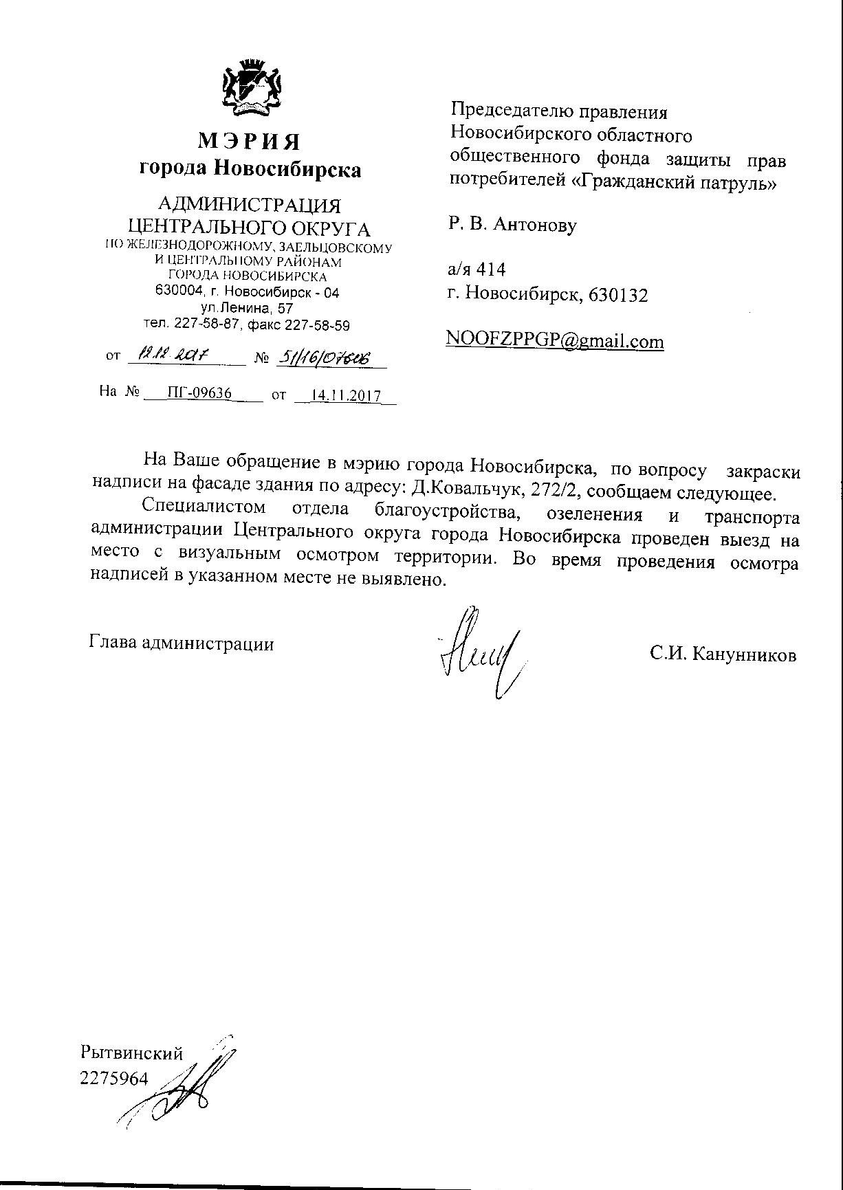 Номер жалобы:26675 Тип жалобы:Иные проблемы ЖКХ Название объекта:Управляющая Компания Регион:Новосибирская область Город:Новосибирск Адрес:ул. Дуси Ковальчук, 272/2 Описание жалобы:Надписи на фасаде дома Статус: