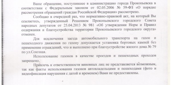Номер жалобы:26639 Тип жалобы:Иные проблемы ЖКХ Название объекта:- Регион:Кемеровская область Город:Прокопьевск Адрес:ул. Союзная, 79 Описание жалобы:Этот участок дорожкт постоянно срезают. Причем один из углов смещается еще и машинами. Вся грязь оседает на остановке и во дворе. Надо либо оградить либо за асфальтировать с ограждением от транспорта. Союзная 79 южный торец здания Статус: