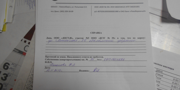 Номер жалобы:26545 Тип жалобы:Иные проблемы ЖКХ Название объекта:Управляющая Компания Регион:Новосибирская область Город:Новосибирск Адрес:ул. Линейная, 39 Описание жалобы:Линейная 39 объявления в неположенном месте Статус: