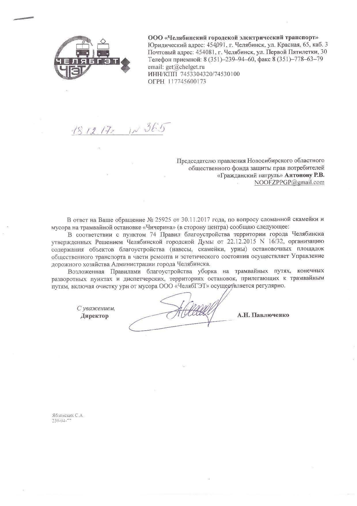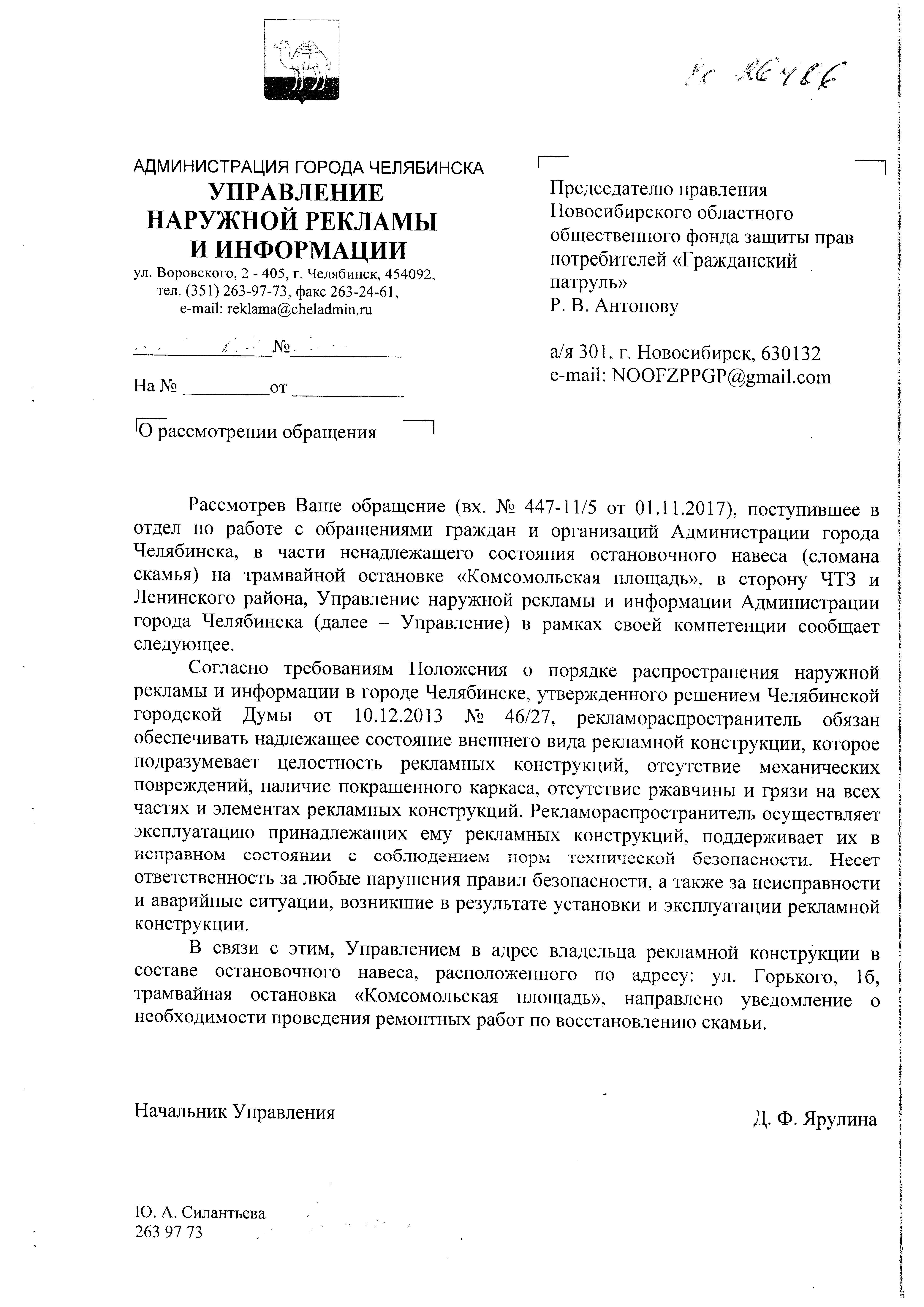 Номер жалобы:26406 Тип жалобы:Общественный транспорт Название объекта:Челябинский Городской Электротранспорт. Регион:Челябинская область Город:Челябинск Адрес:ул. Горького, 1Б Описание жалобы:Сломанная скамейка на остановке "Комсомольская площадь", в сторону ЧТЗ и Ленинского района. Статус: