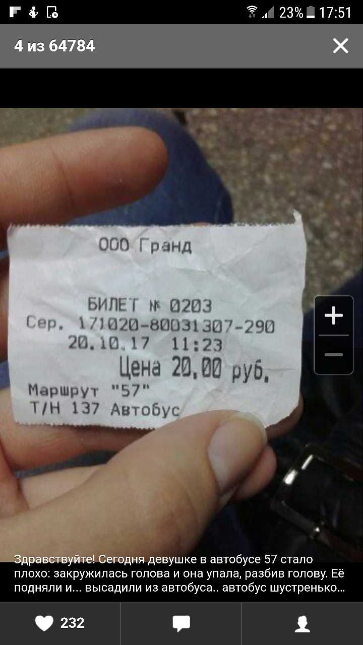Номер жалобы:26086 Тип жалобы:Общественный транспорт Название объекта:ООО "Гранд" Регион:Алтайский край Город:Барнаул Адрес:улица имени А. Юрина, 180 Описание жалобы:Сегодня девушке в автобусе 57 стало плохо: закружилась голова, и она упала, разбив голову. Её подняли и... высадили из автобуса. Автобус бытро закрыл двери и уехал. Водитель и кондуктор не приняли мер по вызову скорой помощи.Дата и время в билете Статус: