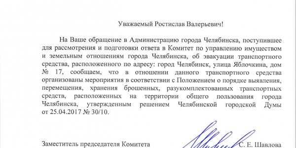 Номер жалобы:26265 Тип жалобы:Общественный транспорт Название объекта:Мэрия Город:Челябинск Адрес:Челябинск, улица Яблочкина, 17 Описание жалобы:Брошенный автобус Статус: