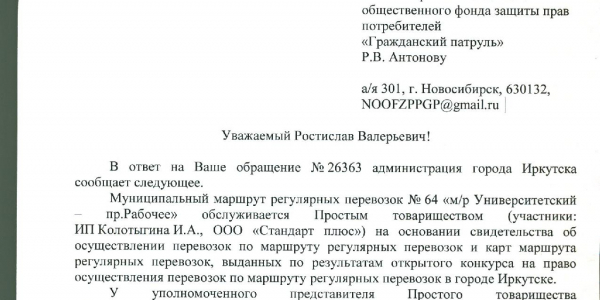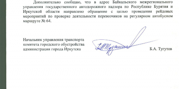 Номер жалобы:26363 Тип жалобы:Общественный транспорт Название объекта:Администрация Иркутска Регион:Иркутская область Адрес:Unnamed Road, Описание жалобы:Общественный транспорт с маршрутом под номером 64, очень плохо ходит. Утром очереди,вечером уехать невозможно. Статус: