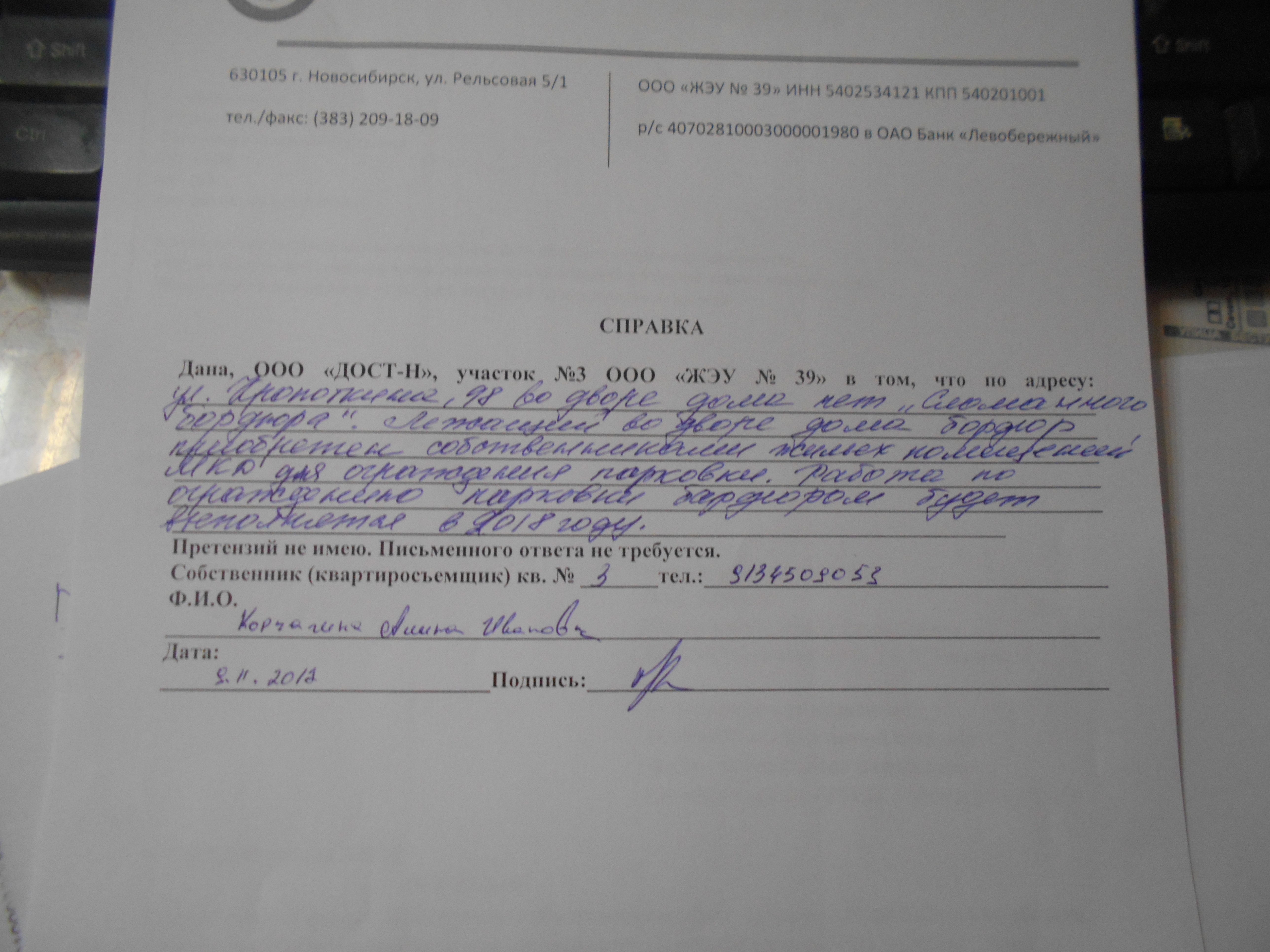 Номер жалобы:26513 Тип жалобы:Иные проблемы ЖКХ Название объекта:Управляющая Компания Регион:Новосибирская область Город:Новосибирск Адрес:ул. Кропоткина, 98 Описание жалобы:Объявления на гараже Статус: