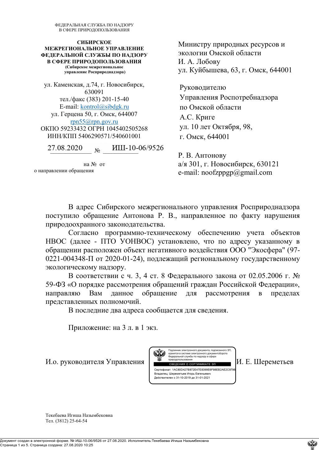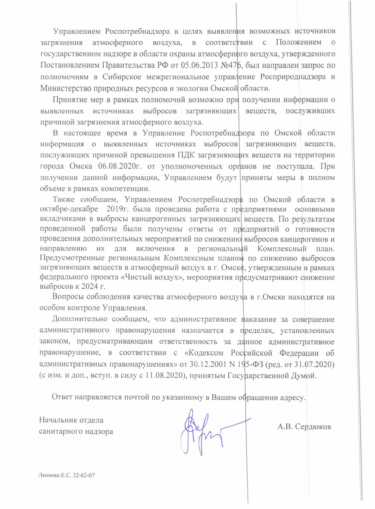 Номер жалобы:67826 Тип жалобы:Прочее Название объекта: Регион:Омская область Город:Омск Адрес:Зелёный бульвар, 4 Описание жалобы:Хотелось бы получить хоть какой-нибудь официальный ответ о предпринятых мерах на улучшение состояния окружающего нас воздуха в городе Омск. Сегодня 6 августа 2020 года примерно с 2 (двух) до 5 (пяти) часов утра были выбросы газа или продуктов хим переработки с какого-то предприятия. Лаборатория , которая передвижная, фиксирует постоянно превышения ПДК опасных для человека веществ от 2х (двух) до 10и (десяти) раз, а реакции со стороны местных властей и надзорных подразделений ноль, во всяком случае т, такое складывается впечатление. Штраф в 10, 100 тысяч для таких предприятий копейки. А страдают жители города и наши дети. Напишите куда обращаться прокуратура, Минприроды, следственный комитет? Или местное правительство ждет первых жертв отравлений и тогда только будет принимать серьёзные меры о приостановки деятельности предприятия , которое уже в наглую все чаще делает эти выбросы? И копеечные штрафы это не исправят... Статус: