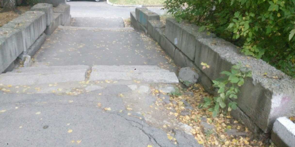 Номер жалобы:25243 Тип жалобы:Иные проблемы ЖКХ Название объекта:? Регион:Свердловская область Город:Екатеринбург Адрес:ул. Большакова, 13А Описание жалобы:Отсутствует пандус, разваливаются ступени, проваливается асфальт Статус: