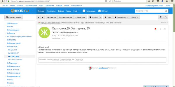 Номер жалобы:24167 Тип жалобы:Иные проблемы ЖКХ Название объекта:Управляющая Компания Город:Новосибирск Адрес:Новосибирск, улица Халтурина, 41/1 Описание жалобы:Комментарий Статус: