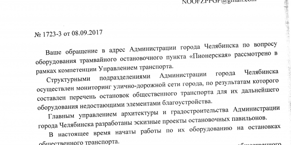 Номер жалобы:24574 Тип жалобы:Общественный транспорт Название объекта:МУП ЧелябГЭТ Регион:Челябинская область Город:Челябинск Адрес:просп. Победы, 304 Описание жалобы:На трамвайной остановке "Пионерская" нет ни одной урны. Статус: