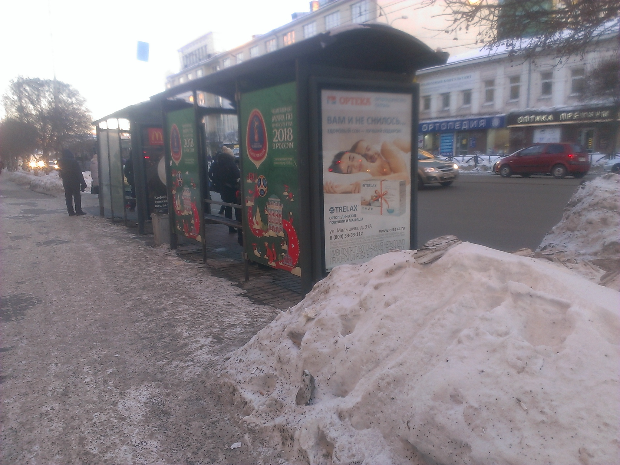 Номер жалобы:14512 Тип жалобы:Качество уборки снега на тротуарах Название объекта:Администрация Екатеринбурга Регион:Свердловская область Город:Екатеринбург Адрес:улица Малышева, 31Б Описание жалобы:Подход с западной стороны остановки «Площадь Малышева» в направлении «Театра Волхонка» затруднён из-за снежной кучи, лежащей на тротуаре. По данной проблеме я обращался в жалобе 14036. В ответе администрации сообщается, что подход к остановке обеспечен. Данная информация частично соответствует действительности. Очистка снега произведена только на узкой полоске вдоль остановочного навеса. Снежная куча мешает подойти к остановке по кратчайшему пути по диагонали от тротуара вдоль улицы. Кроме того, куча сужает ширину основного тротуара вдоль Малышева. Статус: