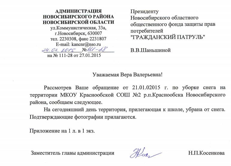 Номер жалобы:789 Тип жалобы:Качество уборки снега на дорогах Название объекта:Администрация р.п. Краснообск Город:Новосибирск Адрес:Краснообск , 76 Описание жалобы:Затруднен проход детей в школу Статус: