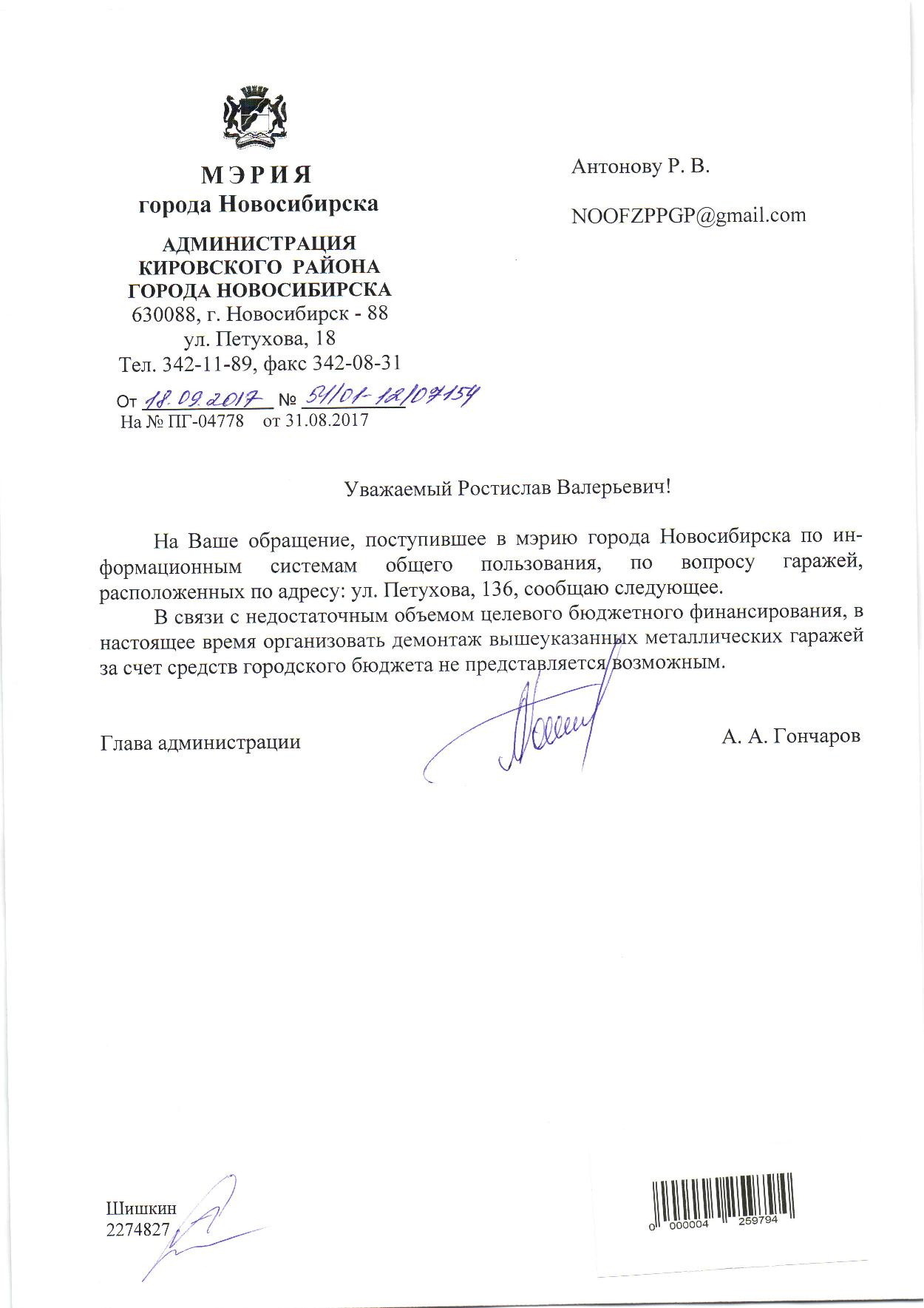 Номер жалобы:23957 Тип жалобы:Иные проблемы ЖКХ Название объекта:Управляющая Компания Город:Novosibirsk Адрес:Novosibirsk, улица Петухова, 136 Описание жалобы:Гаражи Статус: