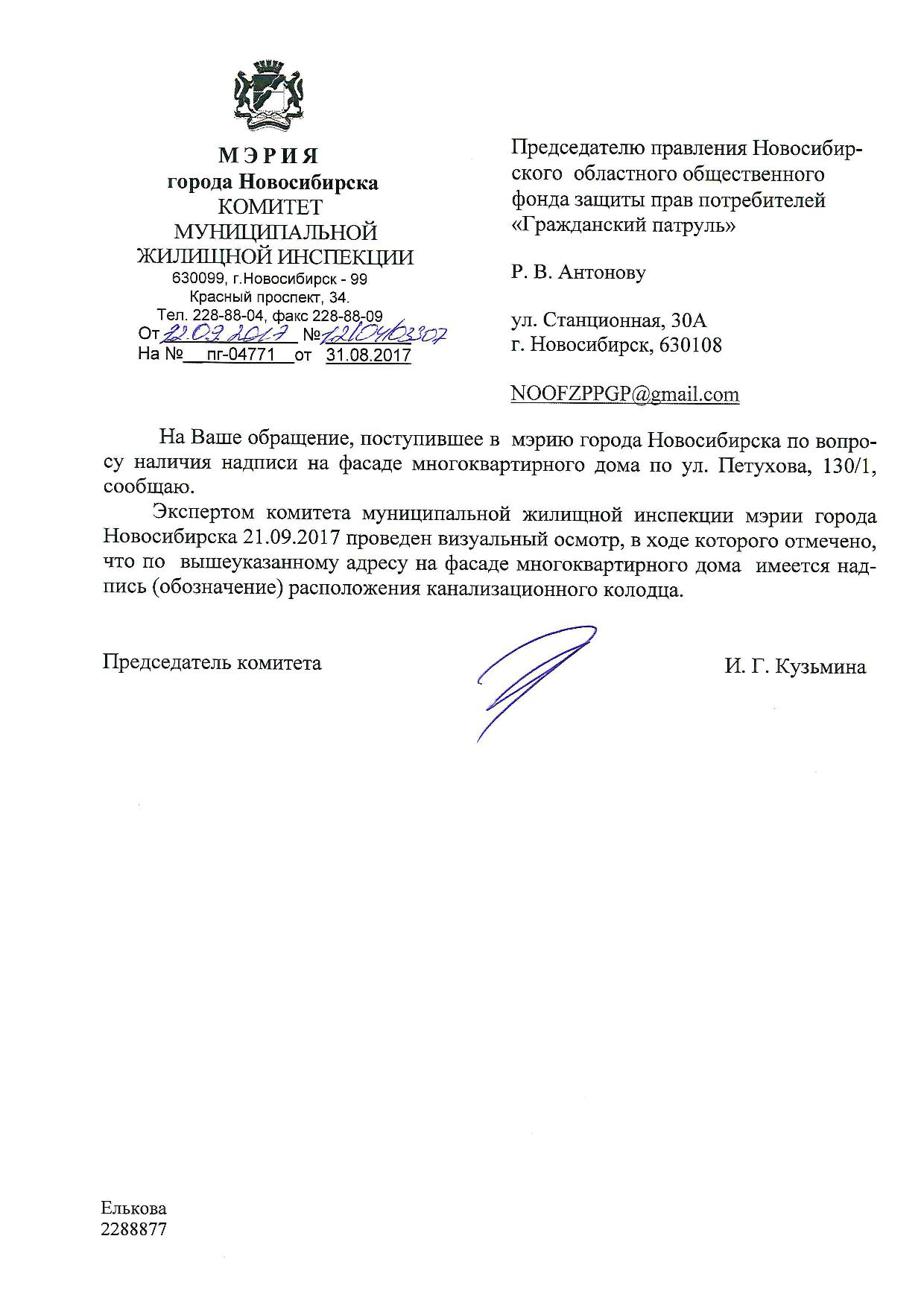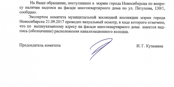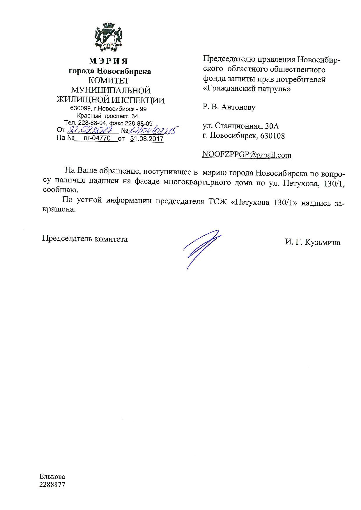 Номер жалобы:23963 Тип жалобы:Иные проблемы ЖКХ Название объекта:Управляющая Компания Город:Novosibirsk Адрес:Novosibirsk, улица Петухова, 130/1 Описание жалобы:Фасад дома разрисован Статус: