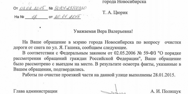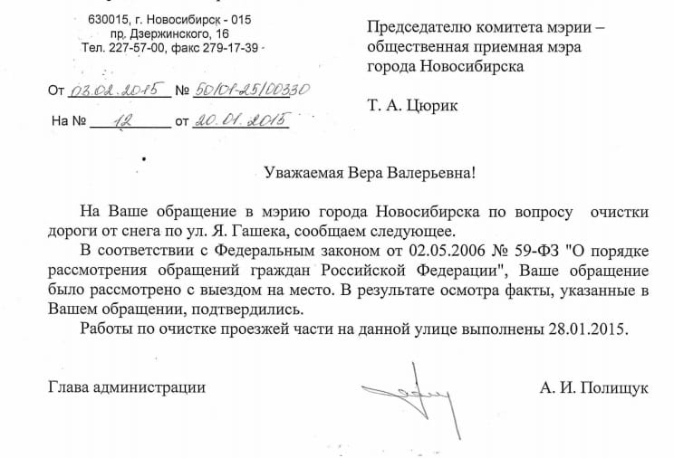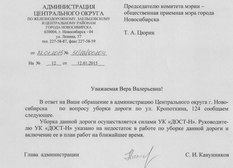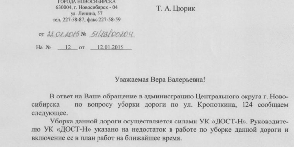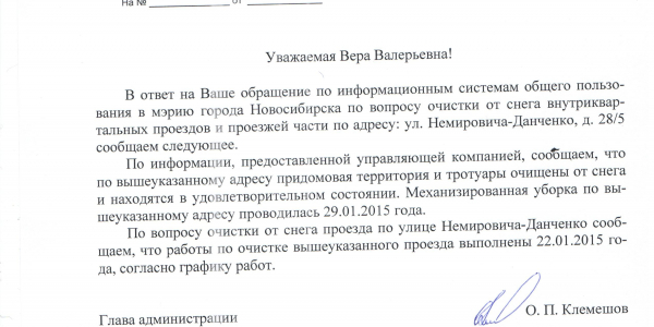 Номер жалобы:774 Тип жалобы:Качество уборки снега на дорогах Название объекта:Адсинистрация Дзержинского Района Адрес:(55.04367935352805, 83.01470328122377) Описание жалобы:Граждане, проживающие по Волочаевской 184 расчищая территорию перед воротами - заваливают выезд по 9-му Почтовому переулку (на пересечении с Волочаевской). Куча снега занимает одну полосу, автомобилистам приходится выезжать на встречку. Статус: