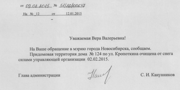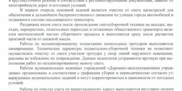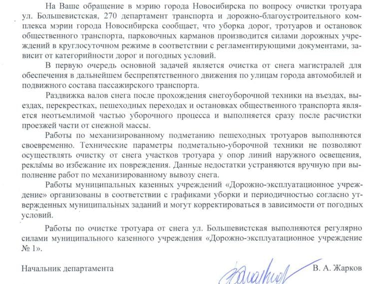 Номер жалобы:776 Тип жалобы:Качество уборки снега на дорогах Название объекта:Спас-дом, Жэу1 Город:Новосибирск Адрес:ул. Кропоткина 124 Описание жалобы:Дворник крыльцо почистил, но при этом весь снег оставил на дороге, машина скорой точно не проедет Статус: