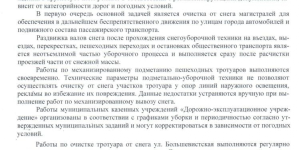 Номер жалобы:773 Тип жалобы:Качество уборки снега на дорогах Название объекта:Администрация Дзержинского Района Адрес:(55.04166823894952, 83.01862198859453) Описание жалобы:Ул. Волочаевская, в особенности отрезок от ГБШ до 9 Почтового переулка, завалена большими валами вся правая полоса, снег на этом отрезке не вывозят с ноября, от Технической до Почтовой образовалась колея, необходимо счистить наледь до асфальта во избежание аварийных ситуаций Статус: