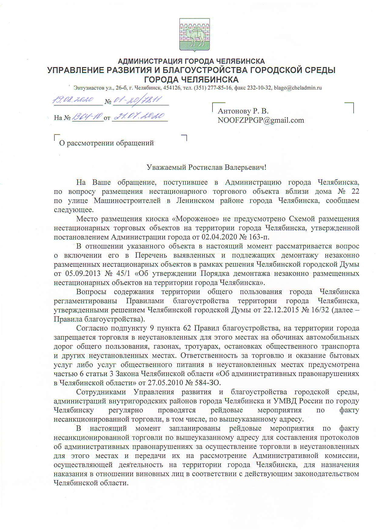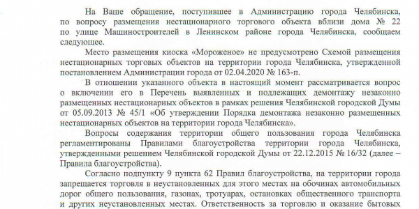 Номер жалобы:67347 Тип жалобы:Прочее Название объекта: Регион:Челябинская область Город:Челябинск Адрес:улица Машиностроителей, 22 Описание жалобы:Незаконный киоск Статус: