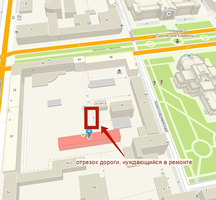 Номер жалобы:3886 Тип жалобы:Ямы на тротуарах Название объекта: Регион:Свердловская область Город:Екатеринбург Адрес:Красноармейская улица, 4А Описание жалобы:Прошу рассмотреть вопрос ремонта дороги по адресу Красноармейская 4 корп а, г. Екатеринбург Статус: