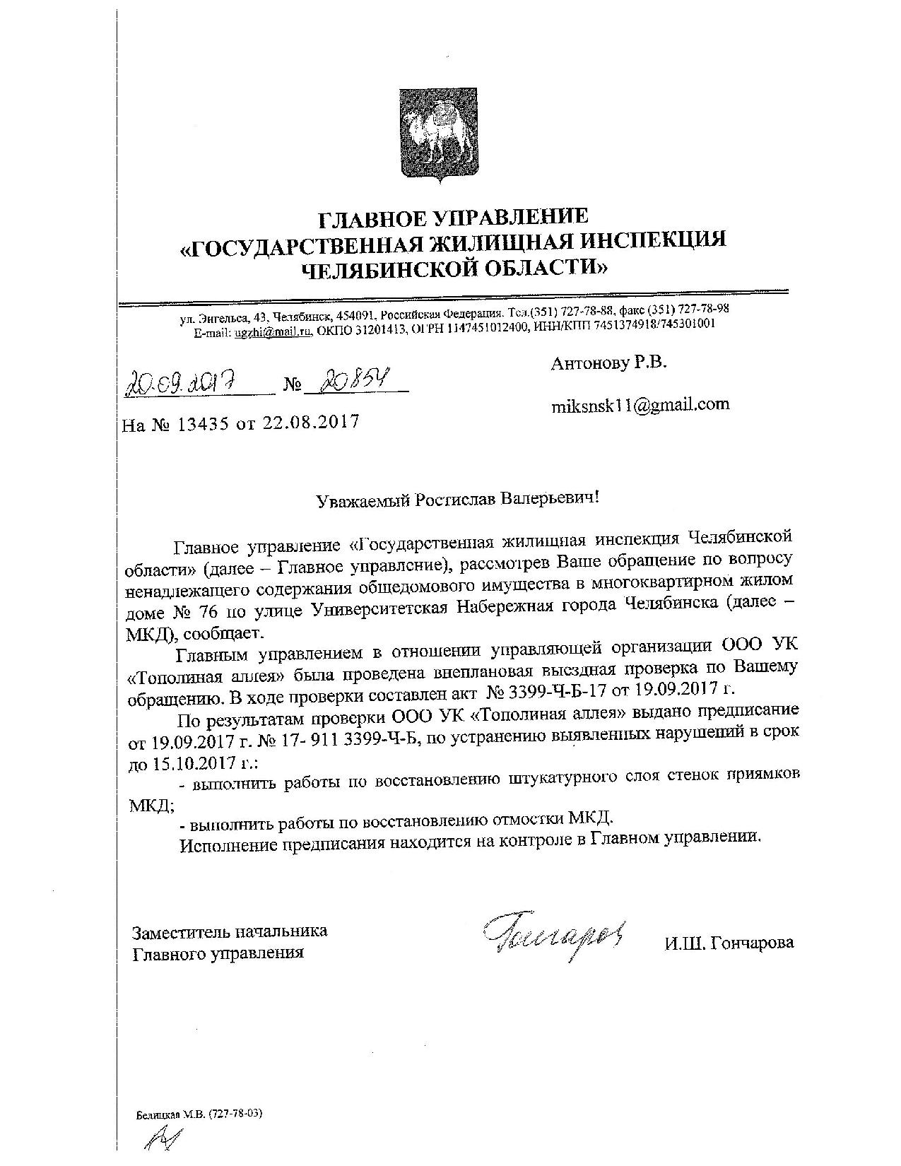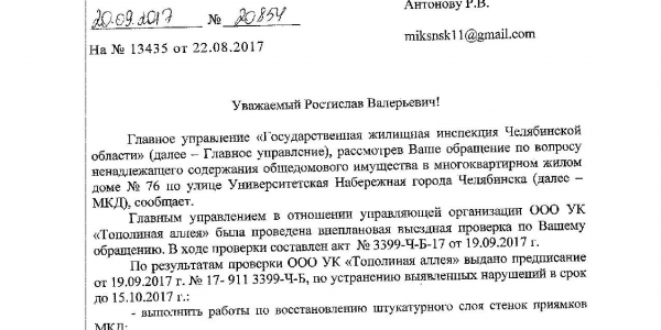 Номер жалобы:23370 Тип жалобы:Иные проблемы ЖКХ Название объекта:УК Тополиная Аллея Город:Челябинск Адрес:Челябинск, улица Университетская Набережная, 76 Описание жалобы:Вход в подвальное помещение жилого дома не отремонтирован Статус: