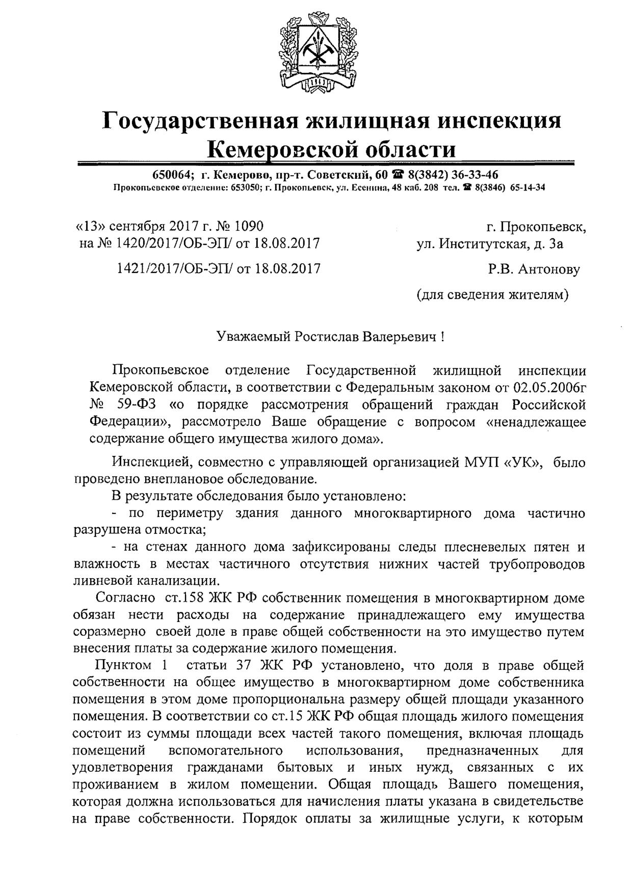 Номер жалобы:23162 Тип жалобы:Иные проблемы ЖКХ Название объекта:ООО "УК "Жилищное хозяйство", ЖЭК 9 Город:Прокопьевск Адрес:Прокопьевск, улица Институтская, 3А Описание жалобы:На стенах дома по всему периметру плесень и грибок. Жэк не принимает никаких мер Статус:
