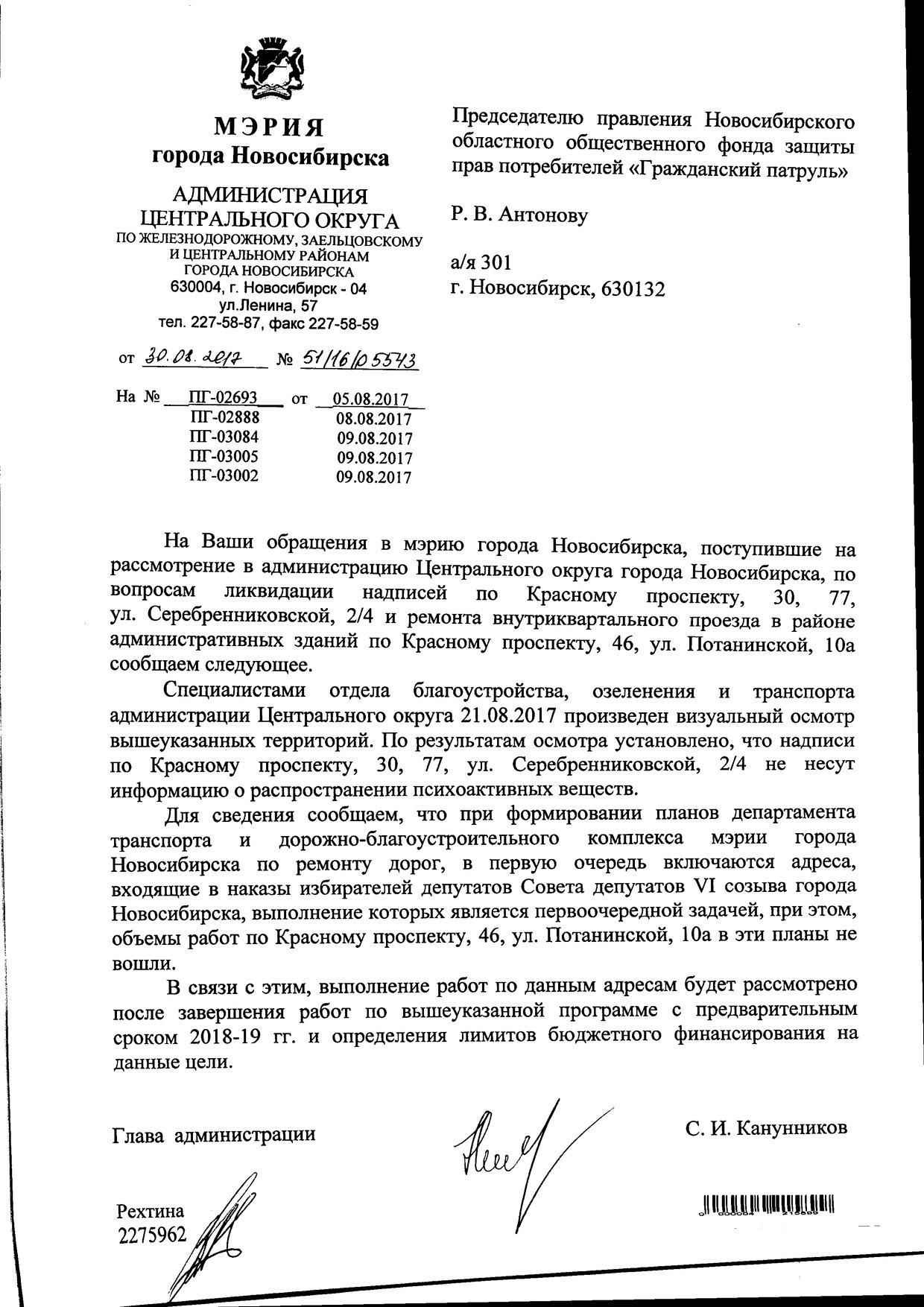 Номер жалобы:22584 Тип жалобы:Иные проблемы ЖКХ Название объекта:Управляющая Компания Регион:Новосибирская область Город:Новосибирск Адрес:Серебрениковская 2/2 Описание жалобы:Серебренниковская 2 дробь 2 надписи на хозяйственном корпусе Статус:
