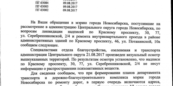 Номер жалобы:22585 Тип жалобы:Иные проблемы ЖКХ Название объекта:Управляющая Компания Регион:Новосибирская область Город:Новосибирск Адрес:Серебренниковская ул., 4/1 Описание жалобы:Надписи на фасаде дома Статус: